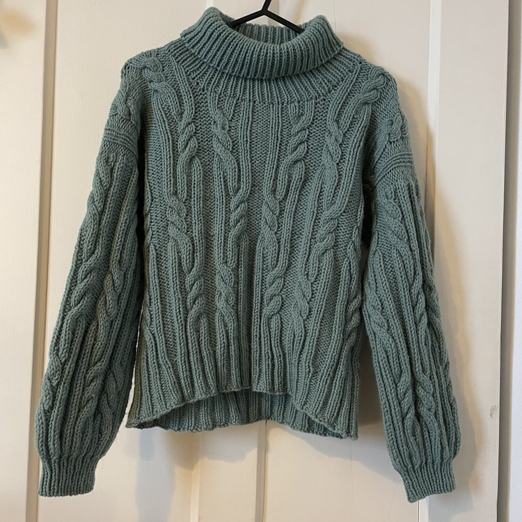 This was a really fun knit to work on – the cable pattern is very fun. I did have a slight issue with the fit; before blocking, the sleeves were a little short (but if I made them longer, the cable repeat pattern would look a bit strange) and the slightly large shoulders and collar looked like Elizabethan leg-of-mutton sleeves and a ruff. A vibe? I don’t know. After blocking, however, the sleeves relaxed and now fit – only the collar looks a little wide now (I did knit it undersize as it looked ridiculously long in the pattern, and I stand by this decision). Overall though, this one was a romp of a knit.