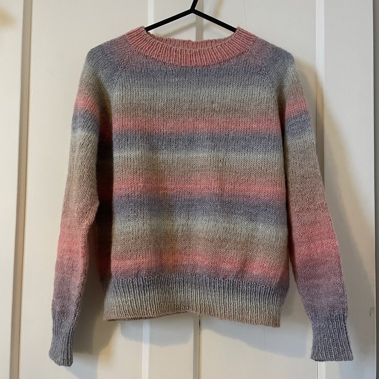 Famously, I dislike raglan. But this jumper may have converted me! I didn’t make any mistakes with the increases this time, and the effect of the ombré yarn looks so cute. I had a little trouble colour matching the sleeves when it came to rejoining the yarn to the live sleeve stitches, but I had to give myself some grace that it wouldn’t be perfect, and as long as it looked somewhat blended in, it was fine. My only regret is adding the sleeve decreases, as I had this problem with the Stockholm jumper; I just don’t really like close-fitting sleeves. I should’ve known but oh, well. I haven’t made a soft, drapey jumper like this before so it’s a very nice addition to my wardrobe.